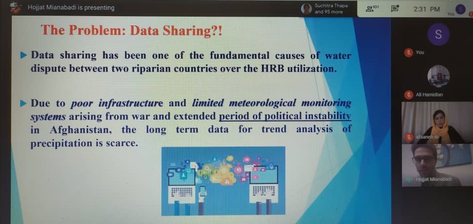 در ابتدا دکتر میان آبادی با تاکید بر مباحث مدیریت آب و چالش های پیش روی آن به مشکلات آب در خاورمیانه اشاره کردند. ایشان بیان داشتند که در خصوص مدیریت مباحث آب دچار بی اعتمادی بین مردم هستیم و این امر امکان مدیریت صحیح آب را سخت و دشوار میکند. رودخانه هرمان و دریاچه هامون از مواردی است که ایران و افغانستان در مورد آنها اختلاف نظر زیادی دارند. به عقیده ایشان برای حل این مشکل بایستی از سنجش از دور جهانی استفاده شود.