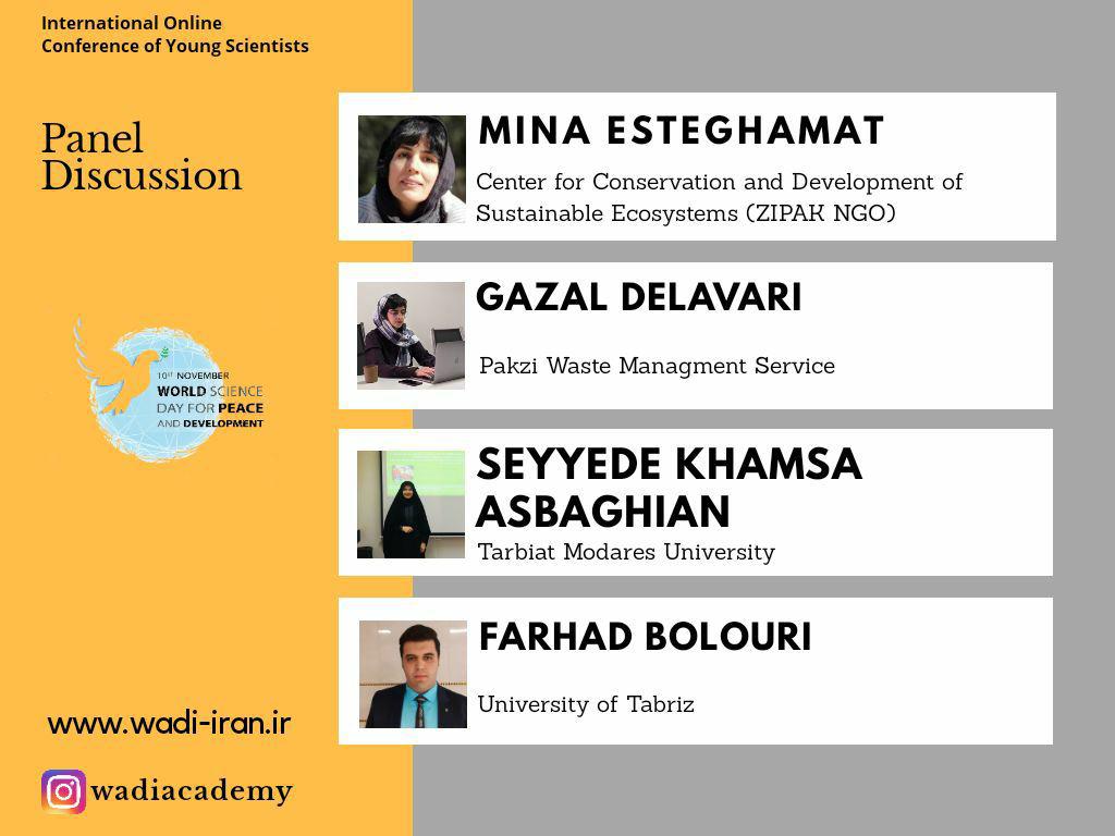 کنفرانس بین المللی مجازی دانشمندان جوان، علم در خدمت صلح و توسعه به همت موسسه بوم شناسان توسعه پایدار وادی با همکاری ۱۴ مجموعه دانشجویی و فعال در عرصههای صلح، محیط زیست، مدیریت آب و روابط بین الملل در تاریخ ۲۰ آبان ماه ۱۳۹۹ با حضور بیش از ۳۰۰ نفر از دانشجویان و فعالان بیش از ۳۰ کشور در این حوزهها از ساعت ۱۴ الی ۱۸ برگزار شد. این رویداد در سه بخش افتتاحیه، سخنرانان کلیدی و پنل ارایه مقالات برگزار و در هر بخش سخنرانان به ارایه مباحث مرتبط با علم، صلح و توسعه پایدار را مطرح کرده و به پرسشهای مطرح شده در بخشهای مختلف پاسخ گفتند.