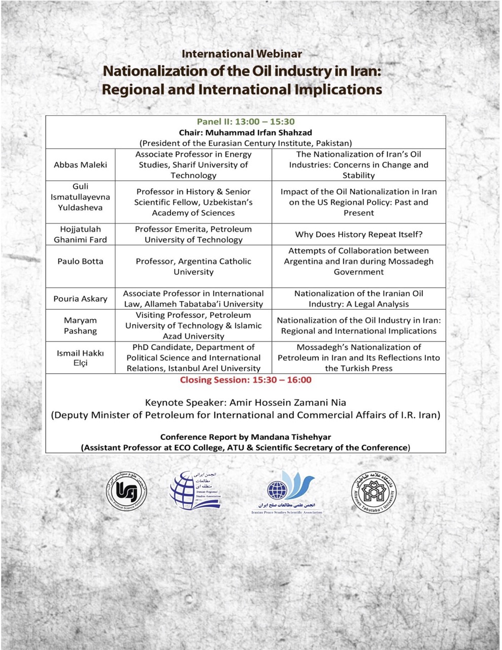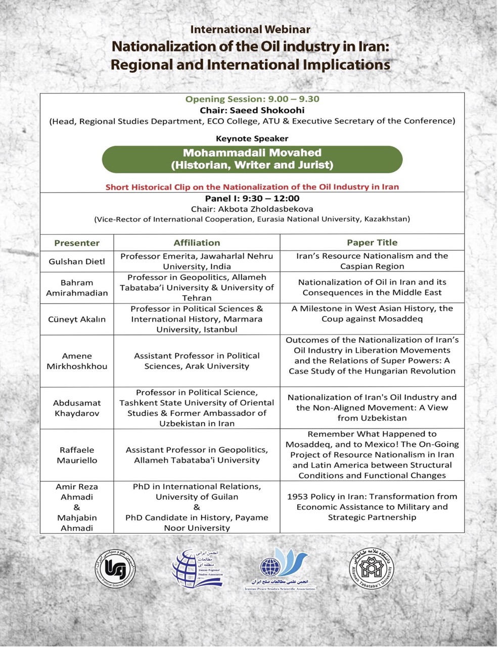 برنامه همایش بین المللی “ملی شدن صنعت نفت در ایران: تاثیرات منطقه ای و بین المللی”