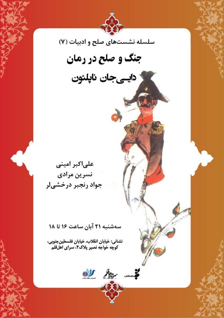 نشست هفتم، جنگ و صلح در رمان دایی جان ناپلئون، با سخنرانی علی اکبر امینی، نسرین مرادی و جواد رنجبر درخشیلر در روز سه شنبه ۲۱ آبان ۹۸ در سرای اهل قلم برپا شد.