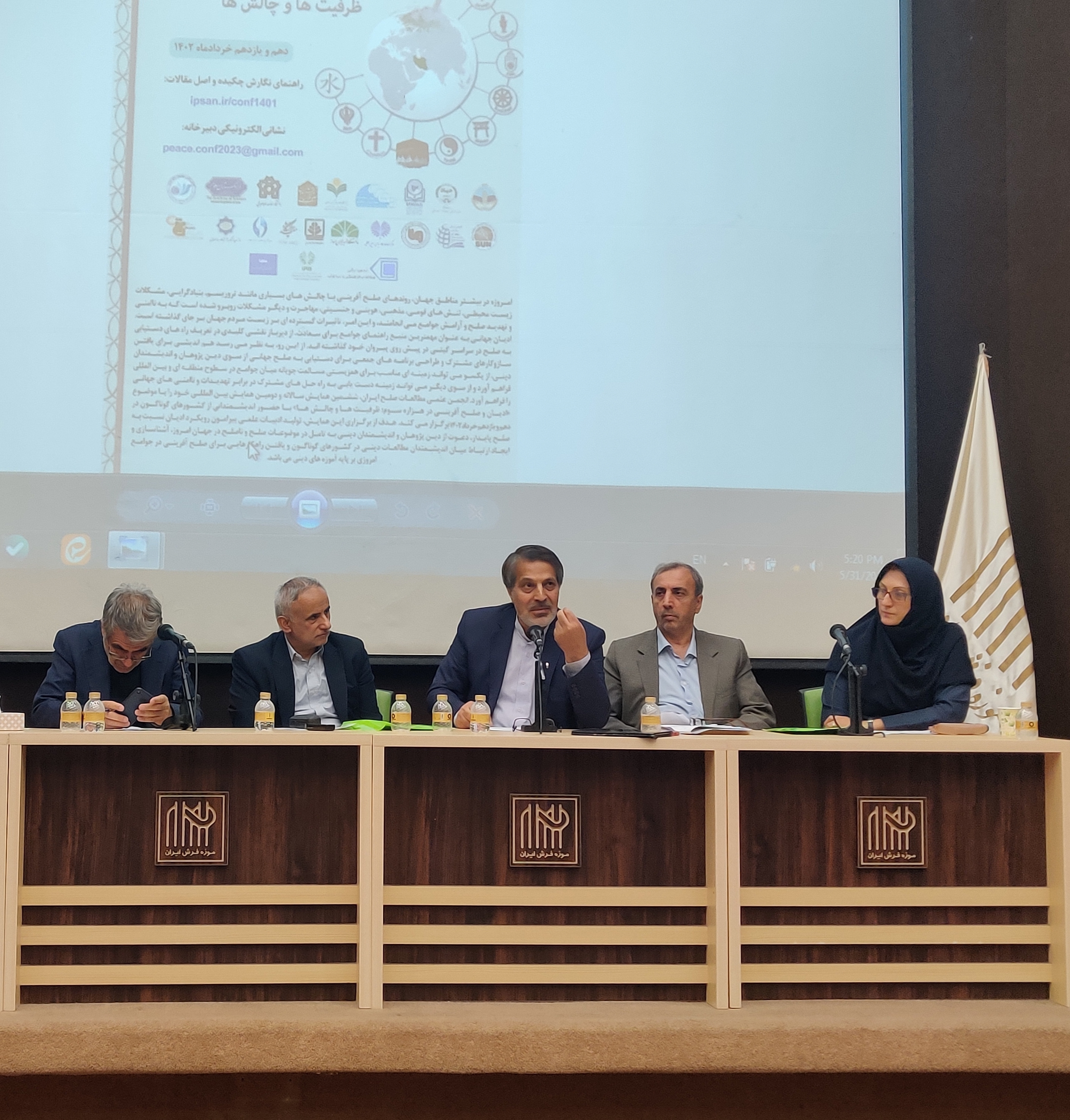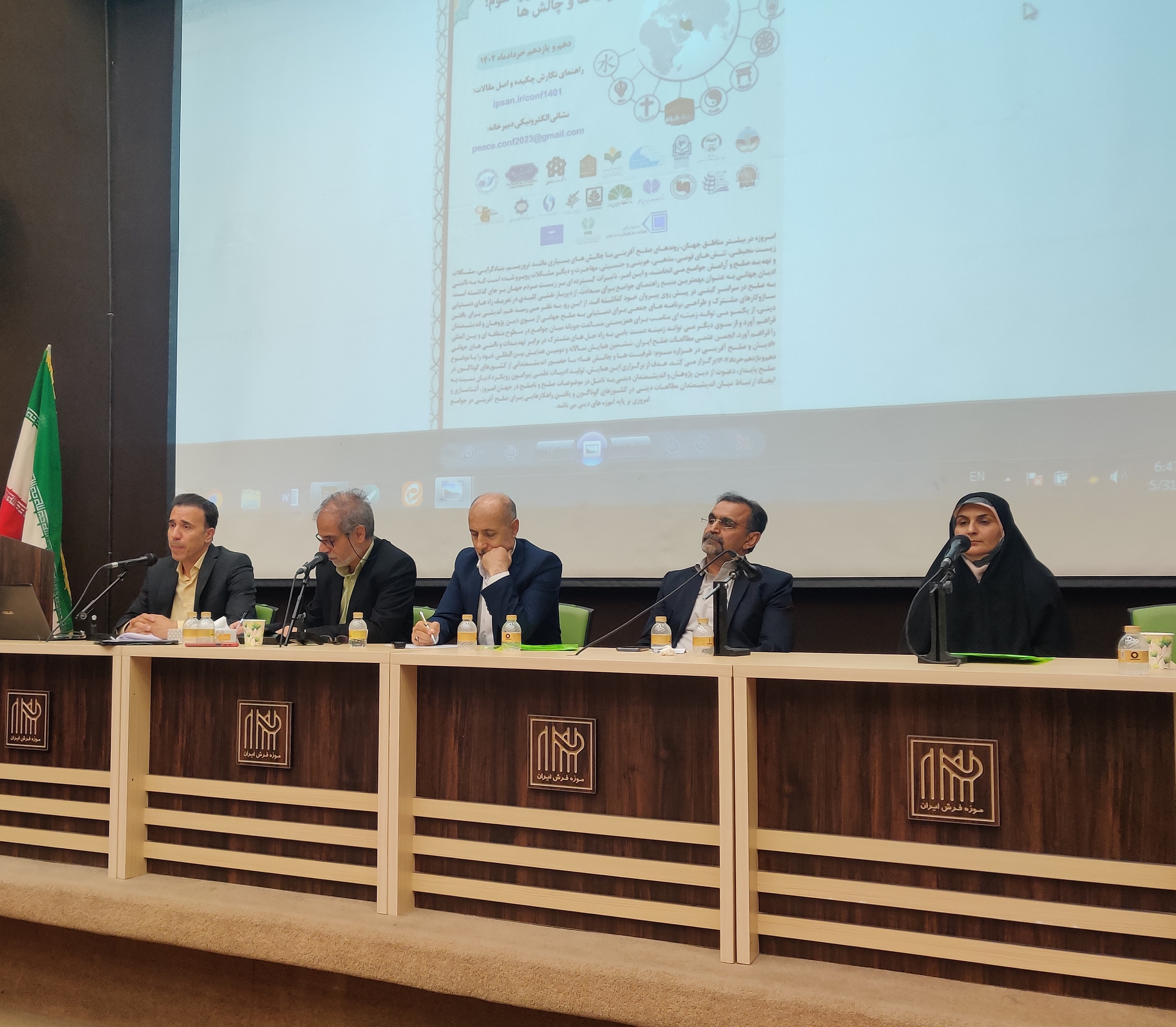 همایش «ادیان و صلح آفرینی در هزاره سوم؛ ظرفیت ها و چالش ها» مورخ دهم خرداد ماه ۱۴۰۲ در موزه فرش ایران برگزار شد. این همایش، ششمین همایش سالانه انجمن علمی مطالعات صلح ایران بود و اساتید برجسته ای از ایران و سایر کشورهای جهان در آن حضور داشتند.