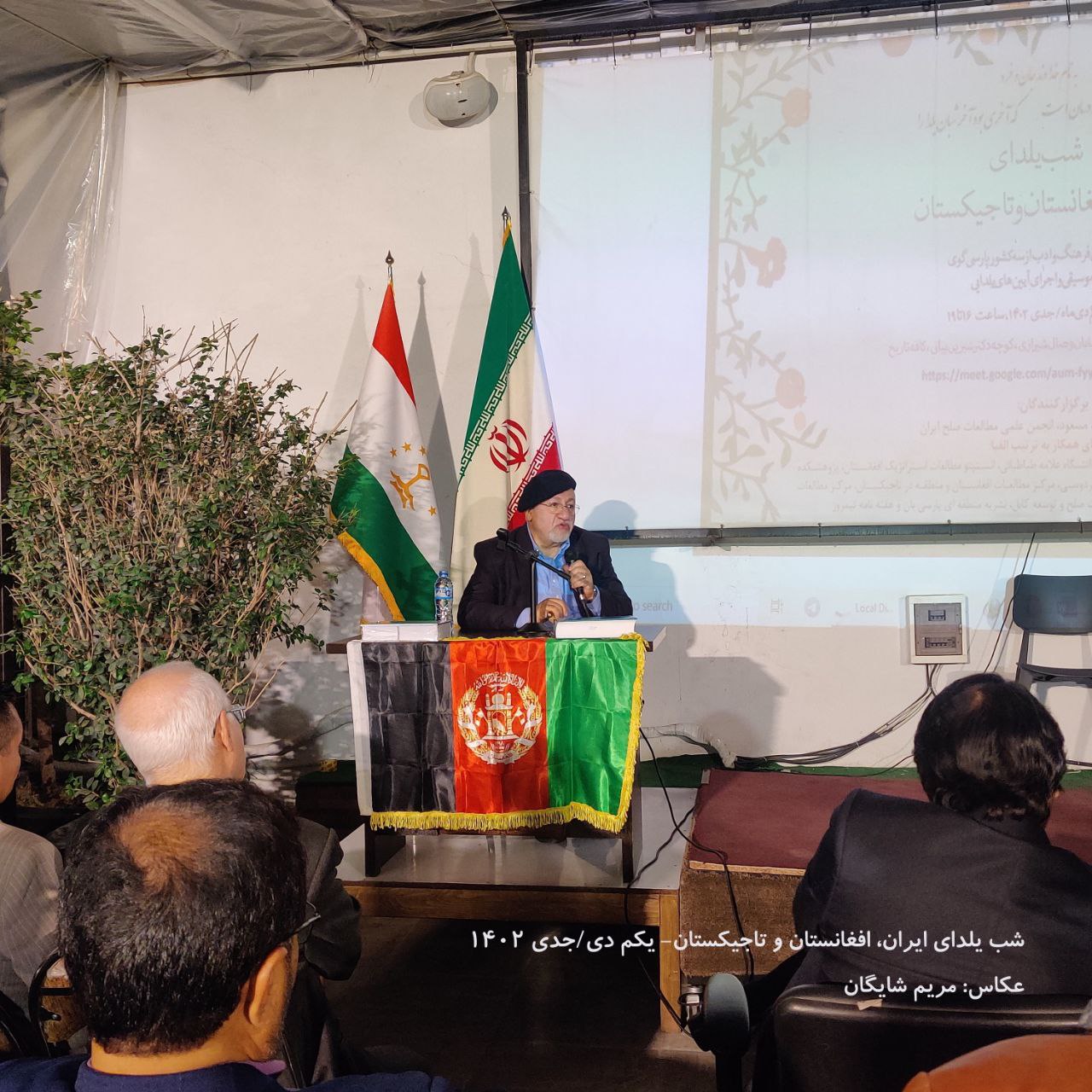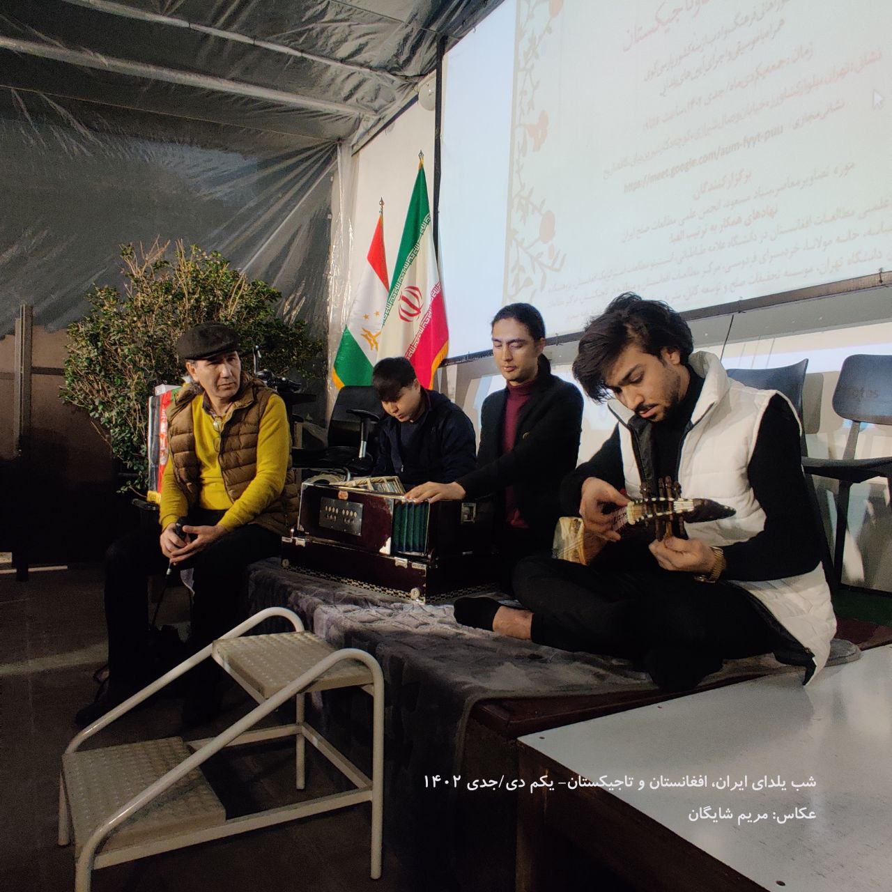 برنامه فرهنگی و ادبی «شب یلدای ایران، افغانستان و تاجیکستان» با همکاری موزه تصاویر معاصر تهران، بنیاد مسعود، انجمن علمی مطالعات صلح ایران، مؤسسه تحقیقات صلح و توسعه کابل، مرکز مطالعات افغانستان و منطقه در تاجیکستان، انجمن پایندان، انجمن علمی مطالعات افغانستان در دانشگاه علامه طباطبایی، انستیتو‌ مطالعات استراتژیک افغانستان، پژوهشکده مطالعات پیشرفته خاورمیانه، خانه مولانا، خردسرای فردوسی، مرکز مطالعات اوراسیای مرکزی دانشگاه تهران، موسسه تحقیقات صلح و توسعه کابل، نشریه منطقه ای پارسی بان و هفته نامه نیمروز از سه کشور، شام‌گاه جمعه، اول جدی/ دی‌ ۱۴۰۲ در محل موزه تصاویر معاصر در تهران برگزار شد.