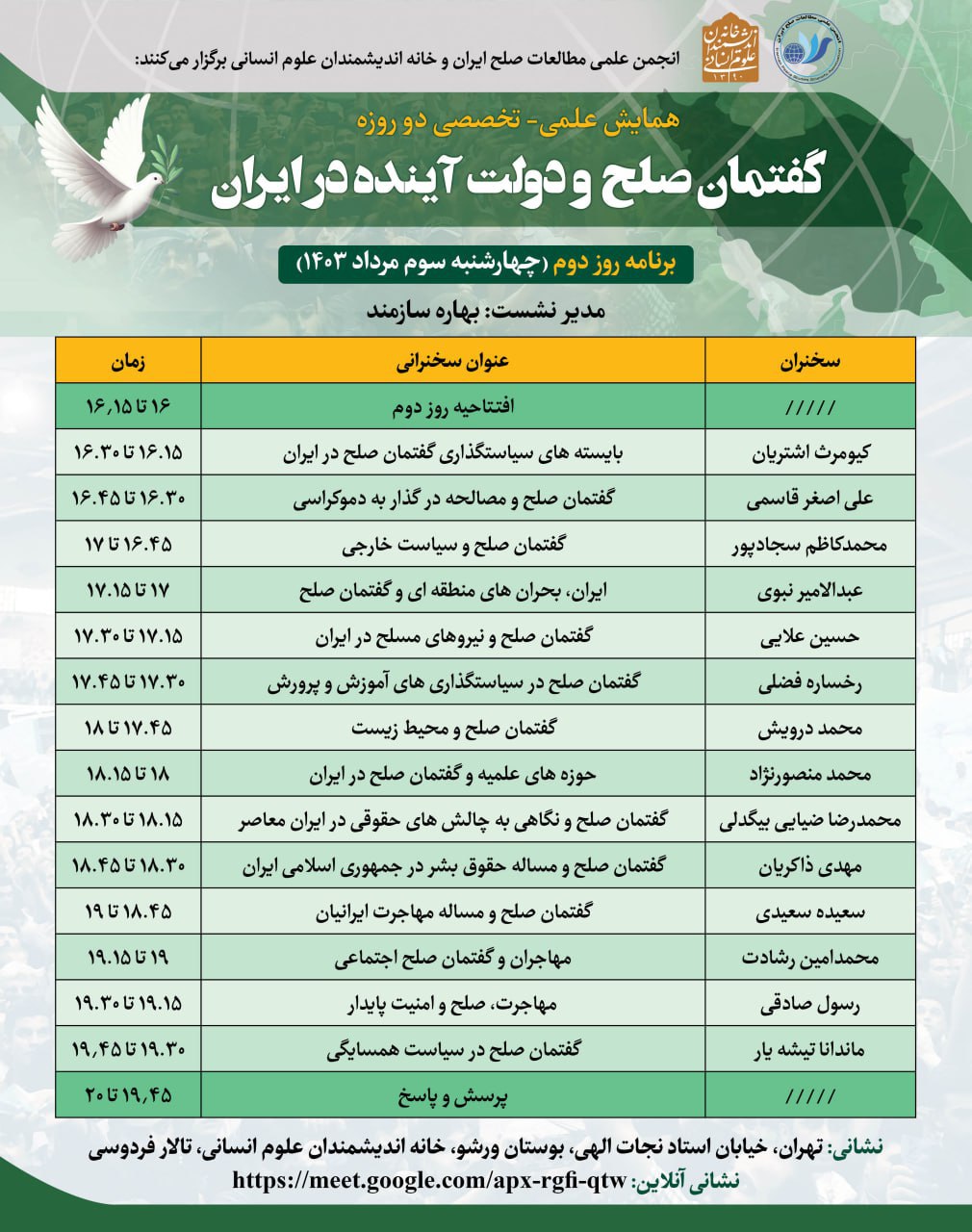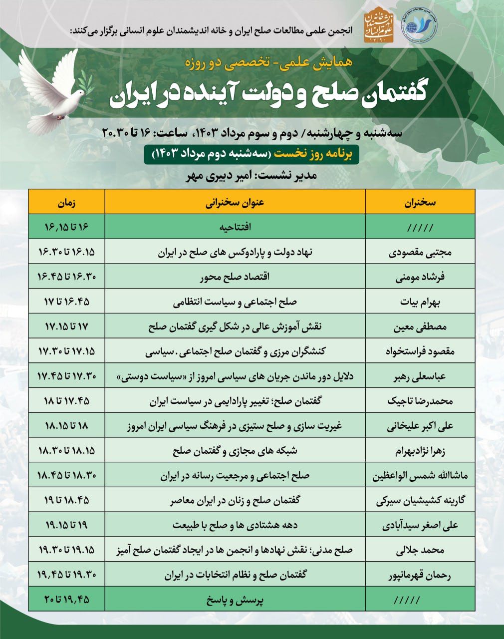 همایش علمی – تخصصی: «گفتمان صلح و دولت آینده در ایران»