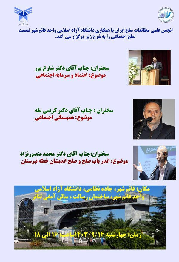 مکان: قائم شهر،؛ جاده نظامی؛ دانشگاه آزاد اسلامی؛ ساختمان رسالت؛ سالن آمفی تئاتر