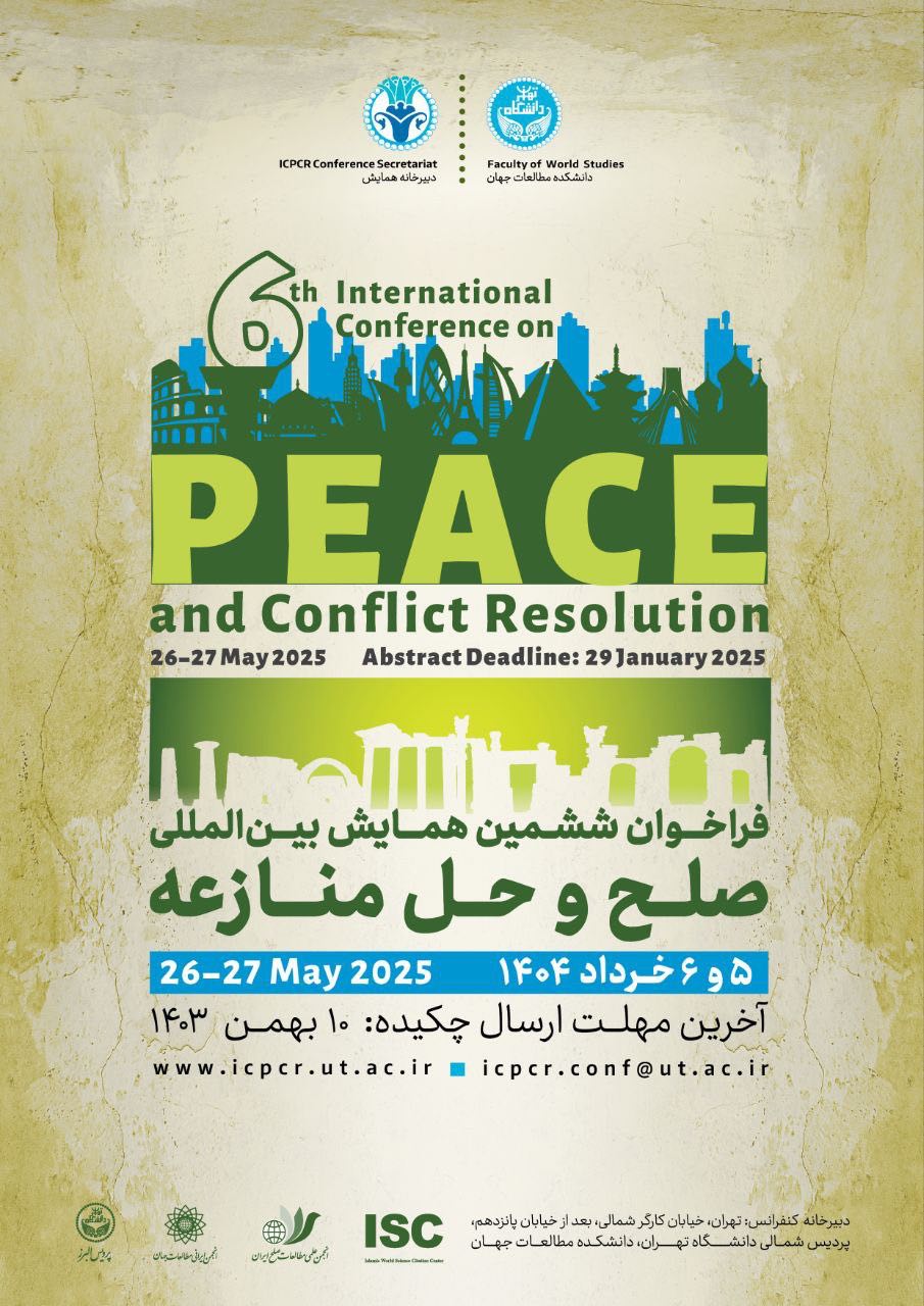 با احترام، ششمین همایش بینالمللی صلح و حل منازعه روزهای ۵ و ۶ خرداد ماه ۱۴۰۴، در دانشکده مطالعات جهان دانشگاه تهران برگزار میشود.
