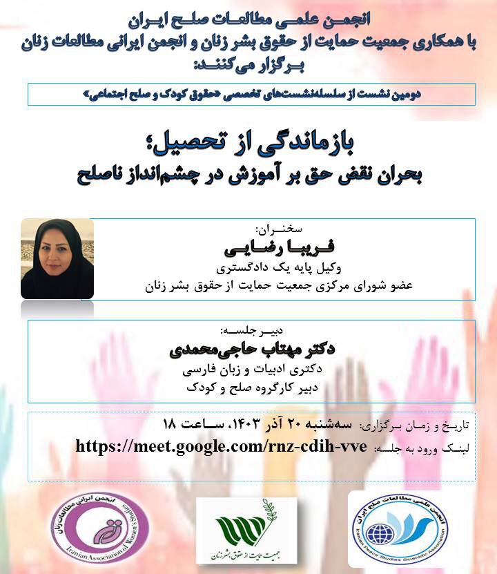 انجمن علمی مطالعات صلح ایران با همکاری جمعیت حمایت از حقوق بشر زنان و انجمن ایرانی مطالعات زنان برگزار میکند: