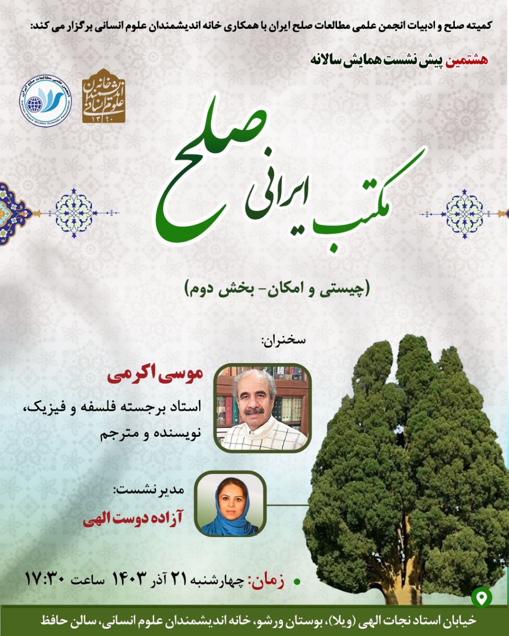 هفتمین پیش نشست همایش سالانه انجمن علمی مطالعات صلح ایران با موضوع ” مکتب ایرانی صلح”
