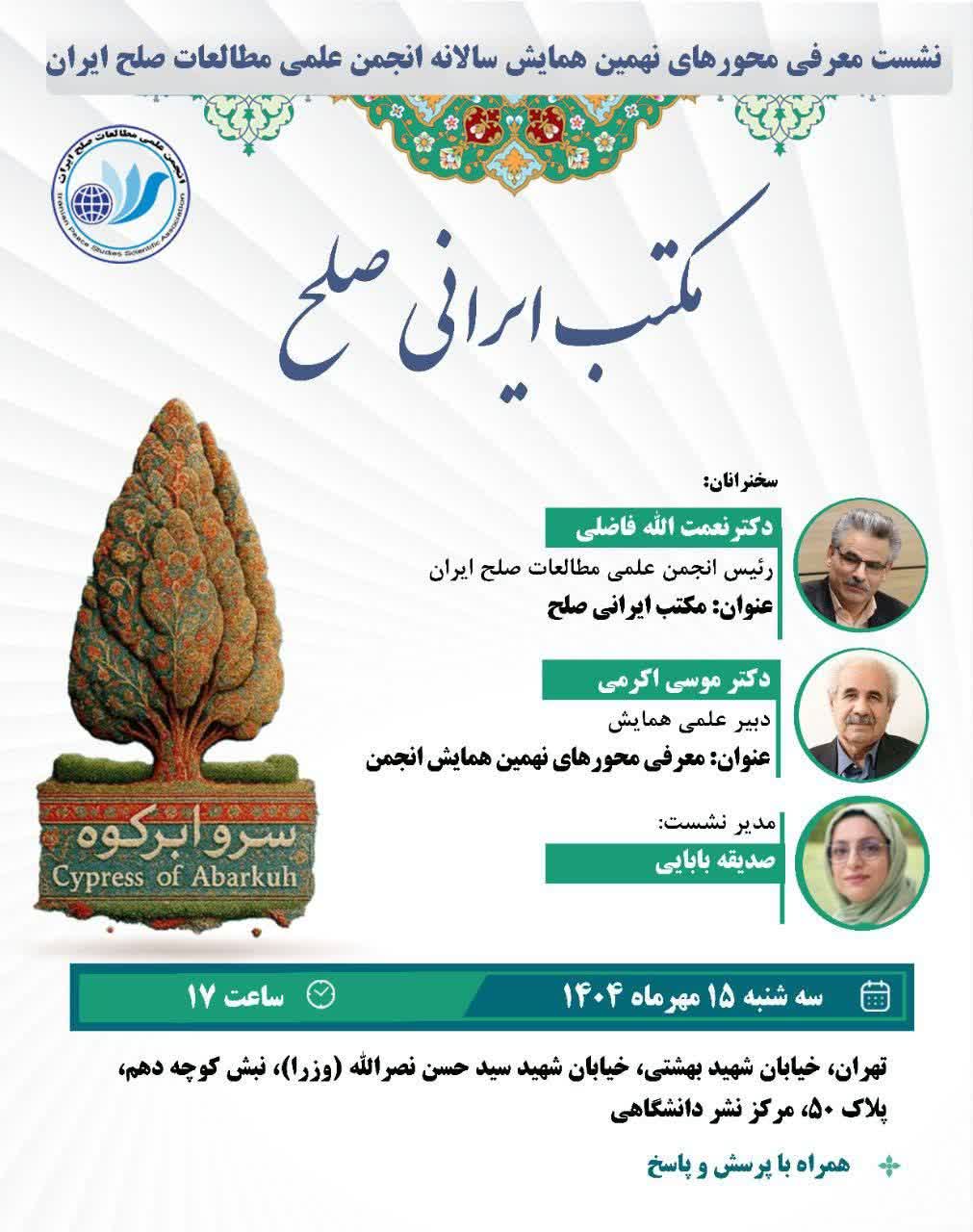 نشست معرفی محورهای نهمین همایش سالانه انجمن علمی مطالعات صلح ایران با عنوان: مکتب ایرانی صلح