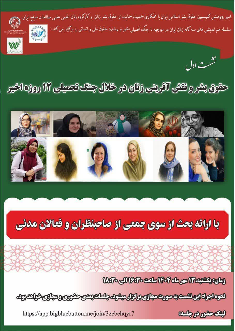 این برنامه جلسه اول از سلسله نشست های هم اندیشی سه گانه ای می باشد که قرار است ابعاد مختلف نقش آفرینی و فداکاری زنان در خلال جنگ ۱۲ روزه اخیر و اقداماتی که پسا جنگ باید در حوزه حقوق زنان انجام شود را مورد بحث و بررسی قرار دهد.