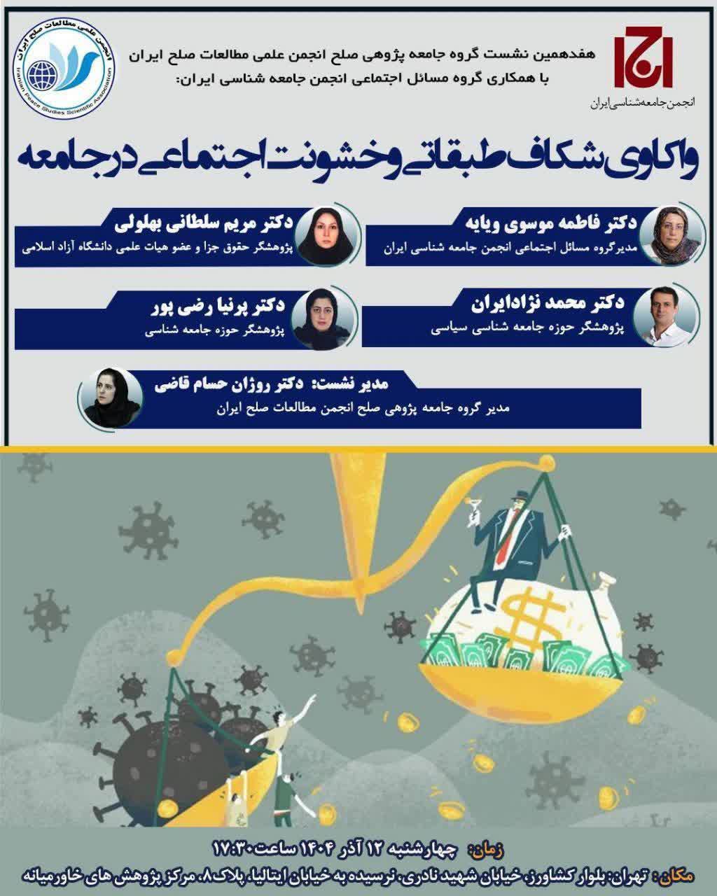هفدهمین نشست گروه جامعه پژوهی صلح انجمن علمی مطالعات صلح ایران با همکاری گروه مسائل اجتماعی انجمن جامعه شناسی ایران: