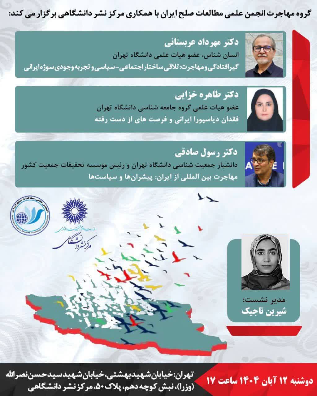 گروه مهاجرت انجمن علمی مطالعات صلح ایران با همکاری مرکز نشر دانشگاهی برگزار می کند: