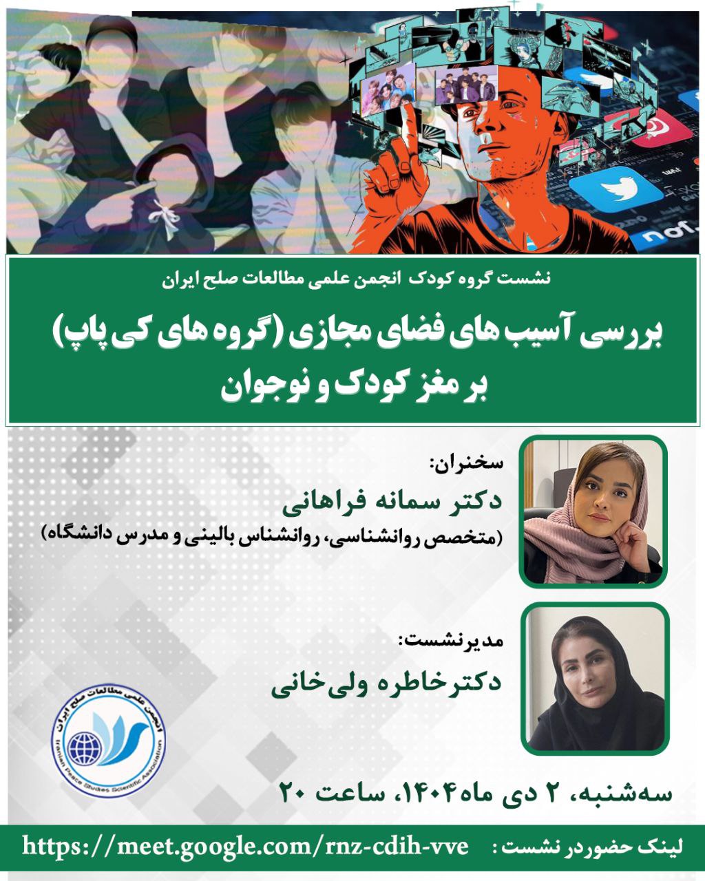 نشست علمی با موضوع:بررسی آسیبهای فضای مجازی (گروه های کیپاپ) بر مغز کودک و نوجوان