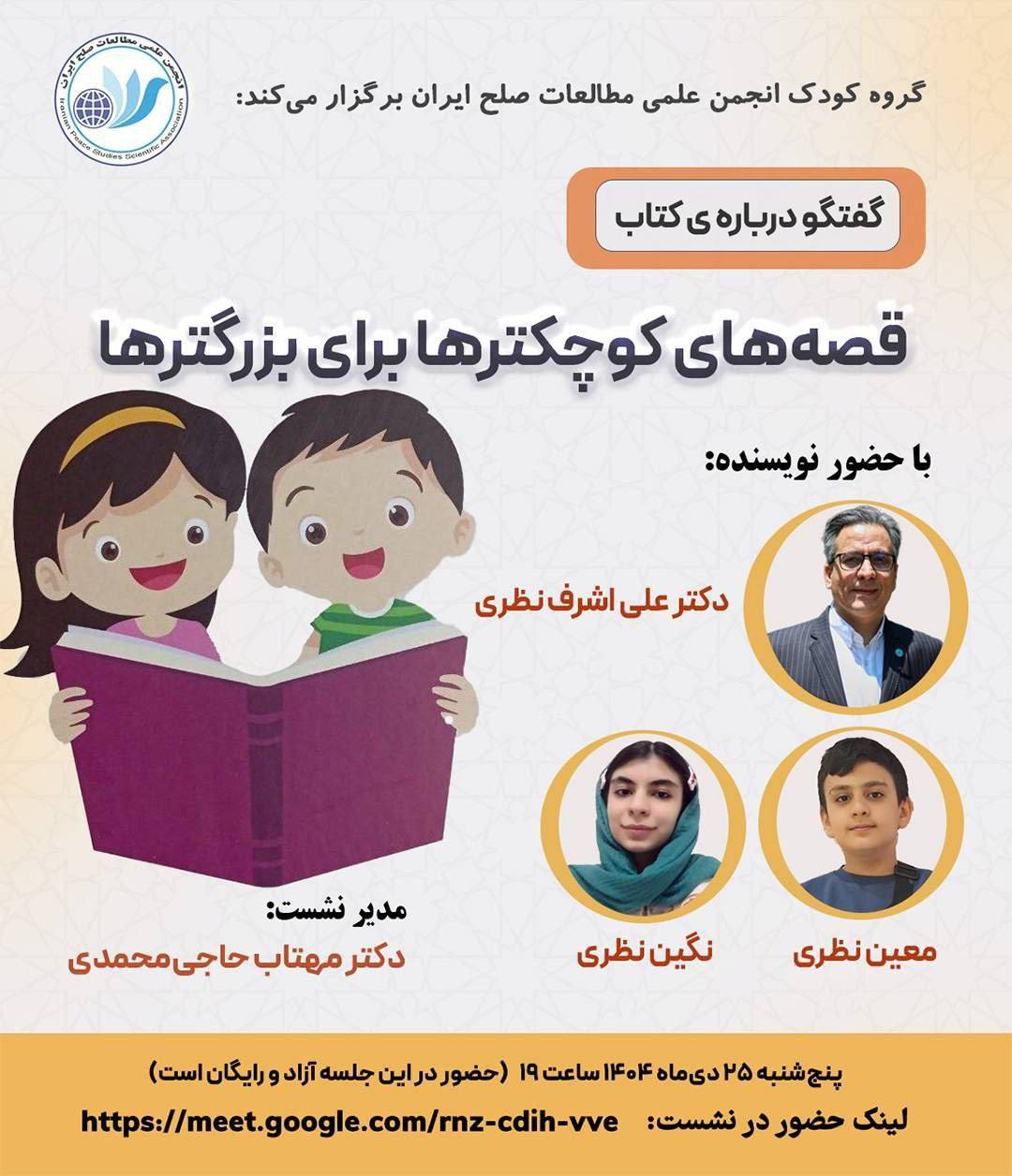 Read Moreبازدیدها: ۸گروه صلح و کودک انجمن علمی مطالعات صلح ایران برگزار میکند: گفتگو دربارهی کتاب قصههای کوچکترها برای بزرگترها