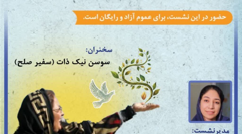 Read Moreبازدیدها: ۷۴سی و یکمین نشست گروه صلح و کودک انجمن علمی مطالعات صلح ایران موضوع: سلسله سفرهای سوسن، سفیر صلح،
