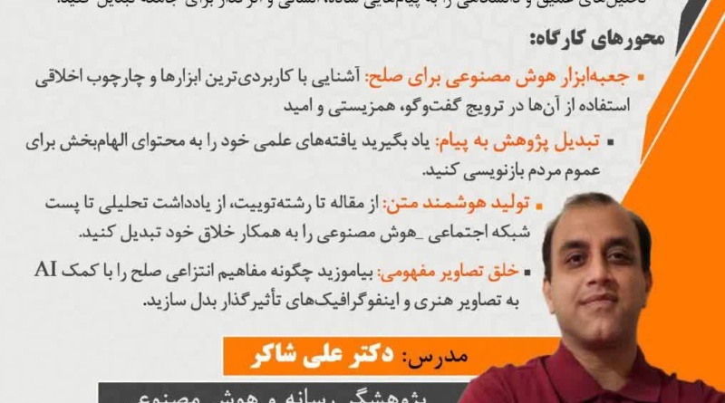 Read Moreبازدیدها: ۱۳۲انجمن علمی مطالعات صلح ایران برگزار میکند: روایت صلح در عصر دیجیتال کارگاه عملی تولید محتوای هوشمند با هوش